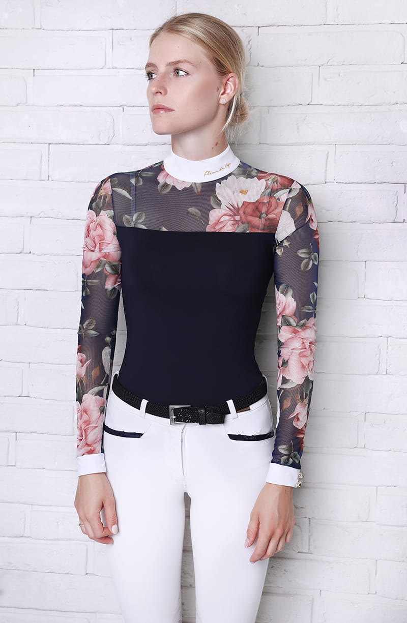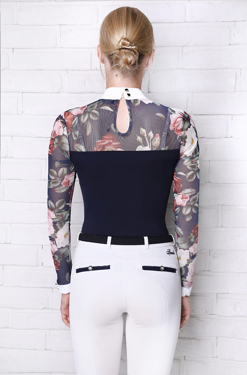 Women’s Equestrian Competition Shirt Navy Cindy Flower