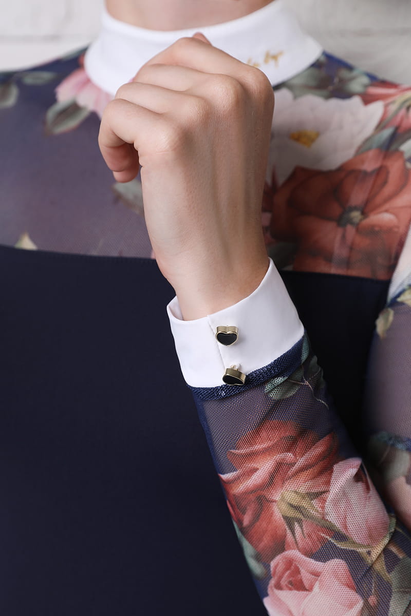 Sleeves made of elastic, pleasant to the skin micro mesh, covered with delicate designed floral print in vintage rose style. Guarantees comfort while riding. The blouse is delicate and breathable additionally polyamide drains water to the outside which improves riding comfort. In addition, the blouse has charming decorative buttons - on the cuffs and collar.